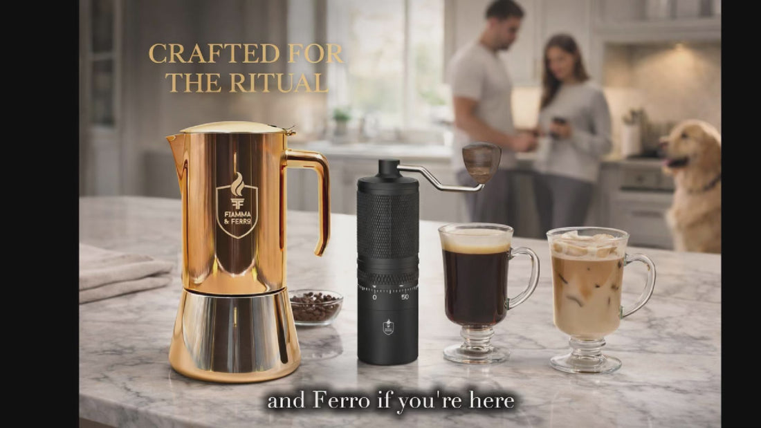 Fiamma & Ferro Titanium+ Precision Manual Grinder + 12Cup Stovetop Espresso Soul.